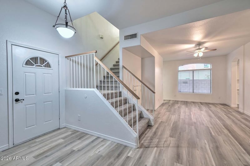Listing details for 26435 42nd Pl, Phoenix, AZ 85050 : This lovely desert home is situated within the coveted Tatum Highland's Subdivision. The home features a FULLY PAID off SOLAR SYSTEM, for a low cost/energy efficient home! It has 2359 sq.ft. and a welcoming light & neutral paint palette. The 4 BR/2.5 BA features a Family Room, Dining Room, and Living Room, Beautifully Refinished Kitchen with X-tra Cabinets and Quartz Countertops. Refrigerator, Washer, and Dryer convey. Dual pane Windows and solar energy star screens. New Navien H20 Tankless Water Heater! Huge oversized MA BR, MA BA, and MA Walk-in Closet. NEW 2026: Luxury Vinyl Plank, Carpet, 2 Guest Baths Remodeled (vanity and sinks), Fresh Interior Paint Throughout, Kitchen Quartz Countertops, Kitchen Cabinets Refinished, 6 Windows.