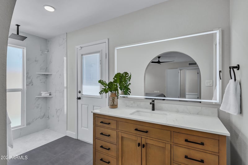 Listing details for 2647 Onza Ave, Mesa, AZ 85202 : Welcome to 2647 W Onza Ave--a fully renovated home blending modern style and everyday comfort. Inside, enjoy new LVP flooring, energy-efficient LED lighting, fresh interior/exterior paint, and energy efficient vinyl windows. The kitchen features sleek Euro-style cabinetry, new appliances, and updated plumbing fixtures. The primary suite offers a spa-like feel with a curbless tiled shower and LED mirror.