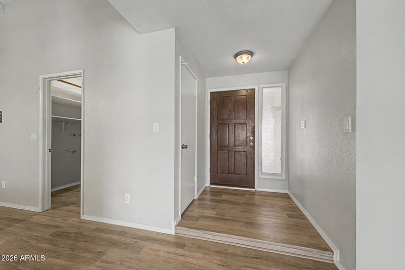 Listing details for 2651 Mcnair St, Chandler, AZ 85224 : Gorgeous single-story home with a sparkling pool and no HOA! The charming facade, beautifully manicured landscape, and 2-car garage are just the beginning. Inside, you'll find sizable living spaces ready to bring you joy, with wood-look flooring, vaulted beamed ceilings in the great room, a brick fireplace to add warmth, and neutral paint. The kitchen is complete with track lights, custom cabinetry, neutral countertops with a breakfast bar, perfect for quick meals & built-in appliances. The primary suite includes a walk-in closet and a private bathroom for added comfort. Shaded side yard with pavers. The backyard is complete with a covered patio perfect for weekend grills and morning coffee, artificial grass & a pool for a refreshing time! Don't miss out on this one!