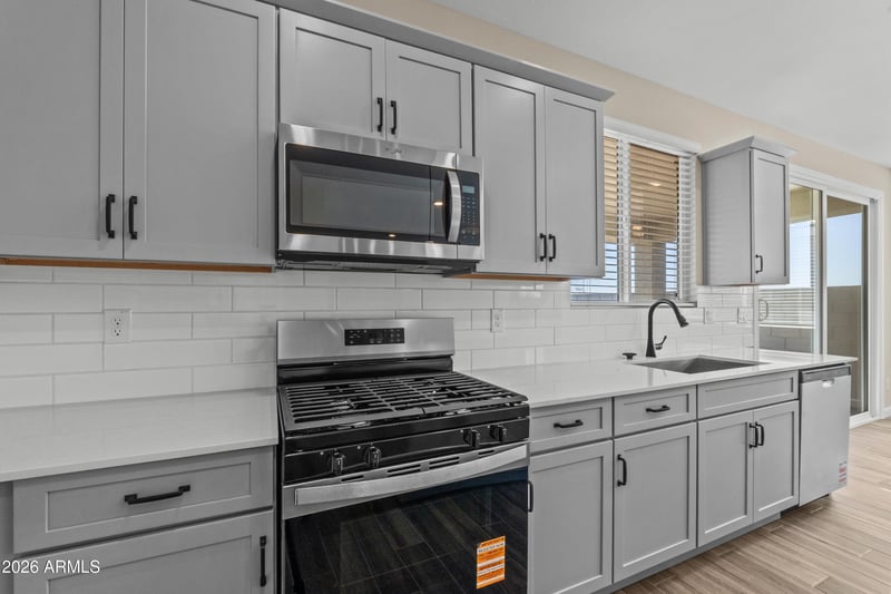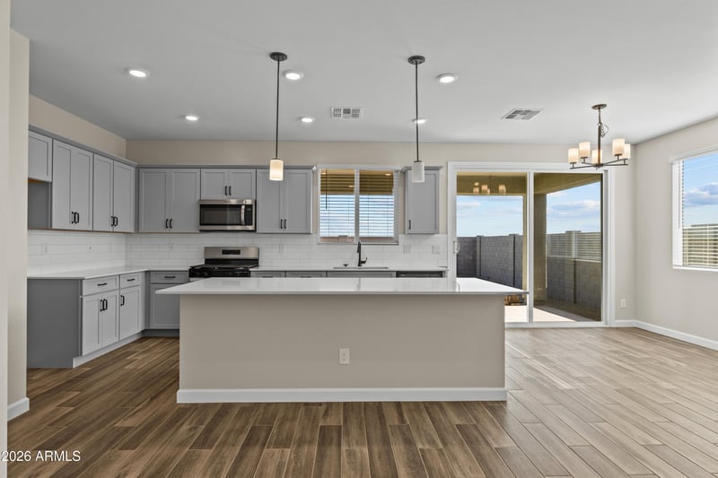 Listing details for 26779 167th Ave, Surprise, AZ 85387 : **CASH Price***The Corona floor plan offers 1,750 sq. ft. of thoughtfully designed living space with 4 bedrooms and 3 baths. The open-concept great room features an inviting dining nook and a spacious kitchen with: Quartz countertops and full tile backsplash, SS Whirlpool appliances and a generous island perfect for gathering at! The owner's suite provides ample space, while the ensuite bath includes dual sinks, a walk-in shower, and a walk-in closet. Two of the secondary bedrooms share a convenient jack-n-jill bath! Outside you'll find a backyard large enough for endless options to create your own outdoor oasis! Close to schools and community park! Come see this home before it is gone!