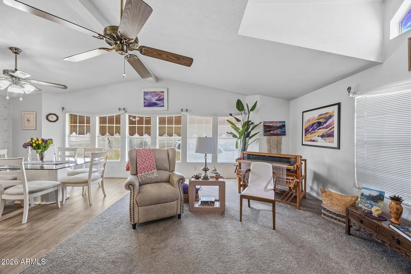 Listing details for 2701 Utopia Rd #153, Phoenix, AZ 85050 : Welcome to your new home at Paradise Shadows, a vibrant active adult community in North Phoenix. Residents enjoy access to a beautifully appointed clubhouse, complete with an indoor heated pool and relaxing jacuzzi. Perfectly situated on a premium corner lot within the community, this home offers exceptional privacy with no rear or side neighbor, along with stunning mountain views. Enjoy peaceful mornings watching the sunrise from the porch, and unwind in the evening with beautiful sunset views from your private yard. Inside, the home has been meticulously cared for and thoughtfully maintained. The spacious open floor plan is filled with natural light, highlighted by vaulted ceilings and expansive windows that create an airy, inviting atmosphere. Major updates provide peace of mind, including a new roof and HVAC system installed in 2016, with the compressor and coil recently replaced in 2026. This home is truly move-in ready and offers the perfect blend of comfort, privacy, and scenic beauty. Life at Paradise Shadows is as social as you want it to be. Every resident is automatically a member of the lively Paradise Shadows Social Association, offering a full calendar of weekly activities, events, and opportunities to connect with neighbors and build lasting friendships. This sought-after 55+ neighborhood features 200 well-maintained manufactured home sites and offers the perfect blend of comfort, convenience, and connection.