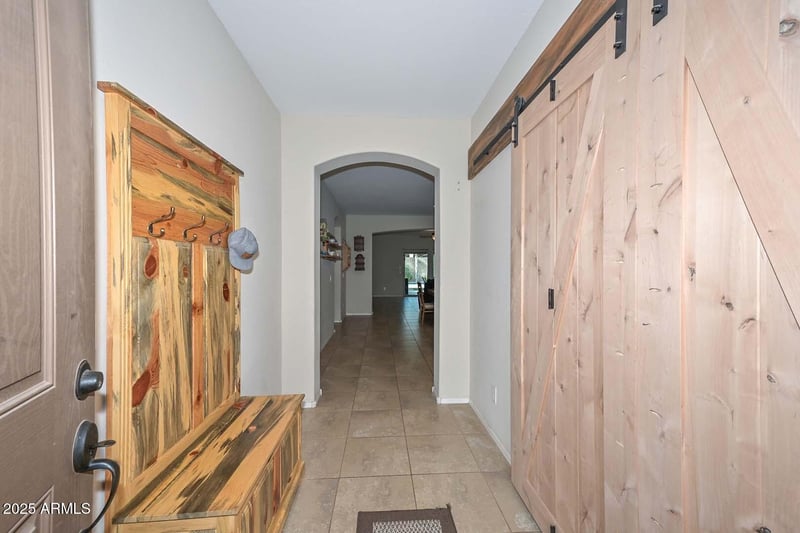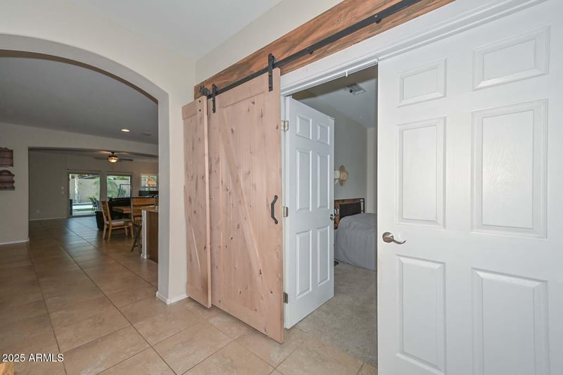 The den makes a striking impression with a barn door and elegant double-door entry, ideal for a home office or flex space. Throughout the home you'll find ceiling fans, plantation shutters on all windows, surround sound, and two convenient linen closets adding to everyday functionality.