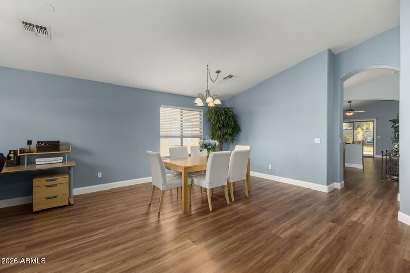 Listing details for 2727 160th Ln, Goodyear, AZ 85338 : Check out this charming single-level home in Sarival Village. Offering 3 beds, 2 baths, 2-car garage, and a mature landscape. The inviting interior features abundant natural light, vaulted ceilings, a soothing palette, and Roosevelt Oak vinyl flooring throughout. An excellent floor plan showcasing a formal living & dining room, as well as a separate family room. The kitchen features stainless steel appliances, ample oak cabinetry, and breakfast space. Enter the primary bedroom to find a walk-in closet and an ensuite with dual sinks. The large backyard is perfect for relaxing or having a fun gathering! It includes a covered patio, storage shed, and perfect spot for cozying up around a fire pit. Nearby are Parks, Goodyear Rec Center and Spring Training Baseball fields. See this one today!