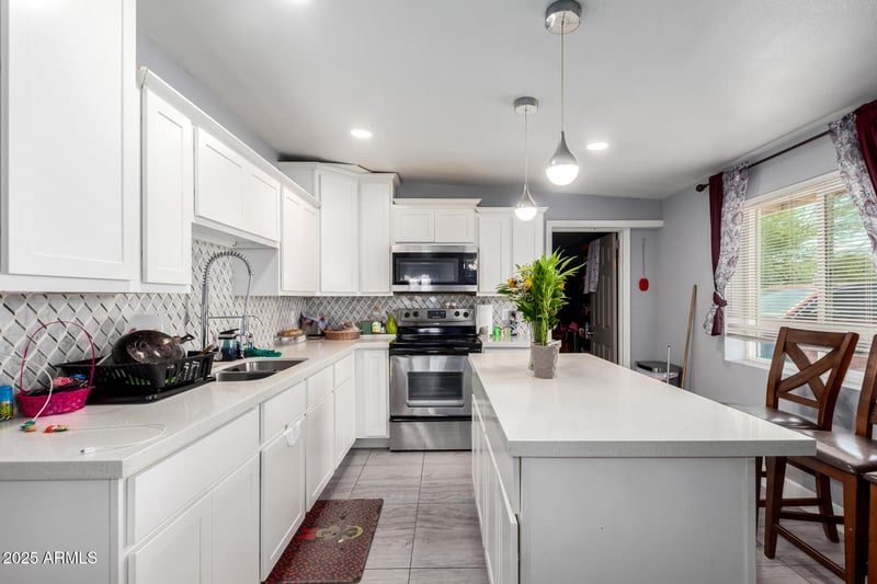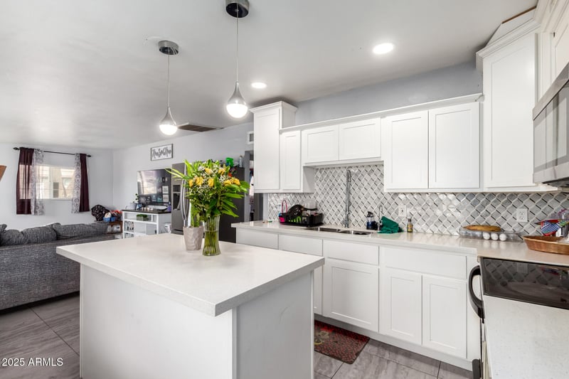 Listing details for 2744 Campbell Ave, Phoenix, AZ 85017 : Fantastic opportunity to own this charming 3-bed, 2-bath home in a great Phoenix location! Inside, you'll find a desirable open layout perfect for everyday living & entertaining. Abundant natural light, designer paint, and tile flooring throughout are some features that can't be left unsaid. The open-concept kitchen boasts SS appliances, quartz counters, a stylish tile backsplash, white shaker cabinetry, recessed & pendant lights, and an island w/breakfast bar. Enter the large main bedroom to discover a walk-in closet & a private bathroom for added comfort. The spacious backyard has a storage shed & a sizable open patio! With your creative ideas, you can make it a complete outdoor oasis. Fully fenced property with two RV gates, one in front & one in the rear from the alley. Make it yours!