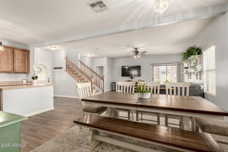 Listing details for 2748 Sailors Way, Gilbert, AZ 85295 : Stunning pool home in community close to everything. Explore the inviting and open layout with wood-look flooring, abundant natural light, and a neutral palette, perfect for entertaining and relaxation. Prepare delicious meals in the well-appointed kitchen, displaying oak cabinetry with crown molding, ample counter space, built-in appliances, a walk-in pantry, and an island. The primary retreat is downstairs and has a walk-in closet and a private bathroom with double sinks and a separate shower & garden tub. The loft/ den is a flexible space perfect for an office or gaming area. Secondary bedrooms have large closets. Out back, you'll have plenty of space for outdoor fun, including a cozy covered patio ideal for morning coffee and a sparkling pool for a refreshing time! Make it yours now