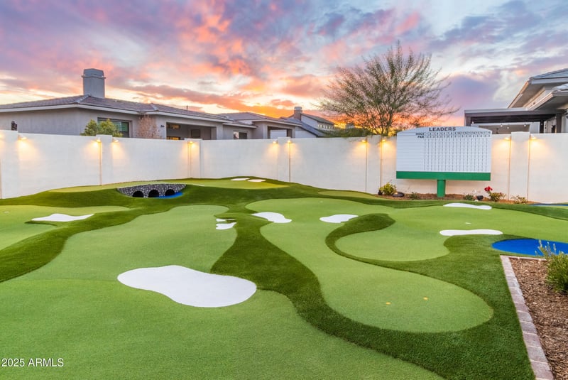 This 4,605 sq. ft. masterpiece offers 5 bedrooms and 4.5 bathrooms, designed with both elegance and functionality in mind. Perfect location blends privacy, prestige, and convenience. But what truly sets this estate apart is its nationally recognized Augusta National-themed backyard, an entertainer's dream and golfer's paradise. This one-of-a-kind outdoor experience has been featured across major media outlets, including: LA Times, Golfweek, Breaking Par, AZ Central, ESPN America's Caddie. From Championship inspired putting greens to immaculate landscaping designed to replicate the iconic Masters setting. This home delivers a lifestyle few properties can match!
