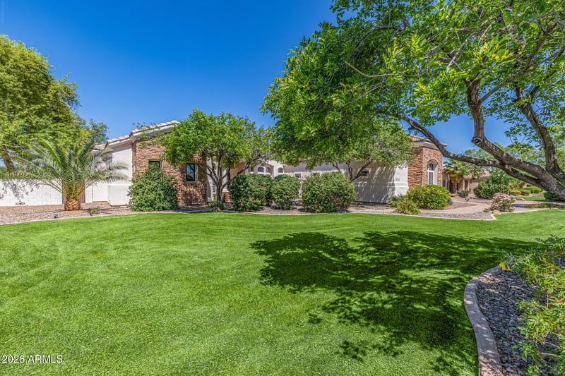 Listing details for 2816 Clark Dr, Gilbert, AZ 85297 : Gorgeous custom home located in one of Gilbert's premier gated communities, the highly coveted Weston Ranch. Completely redesigned in 2024, this home showcases high-end Sub-Zero and Wolf appliances, new cabinetry, countertops, and hardwood floors throughout. The oversized primary suite has been transformed into a luxurious retreat featuring a sitting room, his & hers walk-in closets, and a spa inspired double walk-in shower. Step outside to a stunning resort-like backyard with a gorgeous pool and a new heater/chiller, ramada, built-in BBQ and bar, putting green, basketball court and expansive grass area perfect for volleyball, football, or soccer. There is also room to add an RV Garage or Casita, if desired. Ideally located near dining, shopping, freeway access, and Gilbert Regional Park.