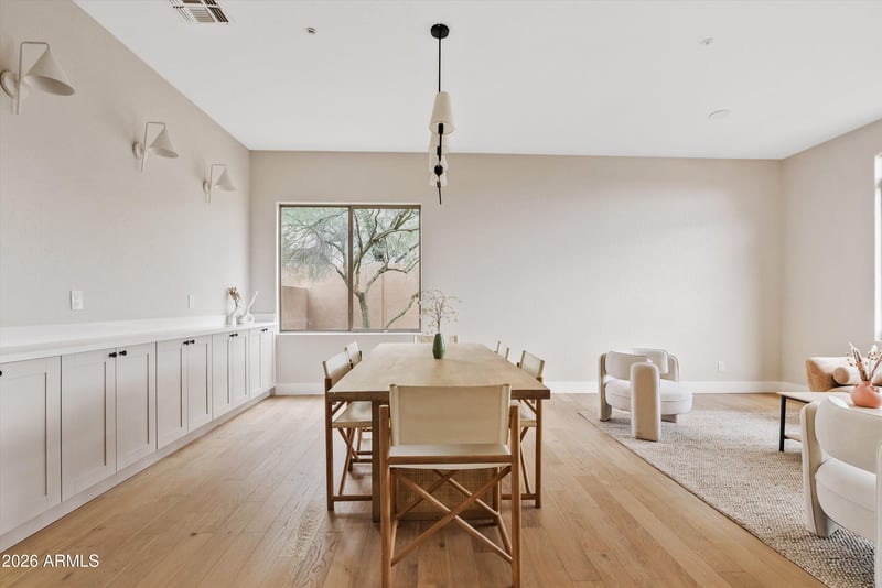 Listing details for 28604 92nd Pl, Scottsdale, AZ 85262 : Beautifully updated single-level home in Troon North backing to a desert preserve with seamless indoor/outdoor living. The open-concept layout features real wood plank flooring, designer lighting, and expansive multi-panel doors that open the span of nearly the entire back of the house to a covered patio and resort-style backyard. The kitchen offers custom cabinetry, quartz countertops, and a large island ideal for entertaining. Don't miss the walk in butler pantry for ample storage. The primary suite is a true retreat with backyard access, a spa-inspired bath featuring a freestanding soaking tub, oversized walk-in shower, dual vanities, and a custom walk-in closet. Enjoy a sparkling pool, built-in outdoor kitchen and fireplace, and serene desert views.