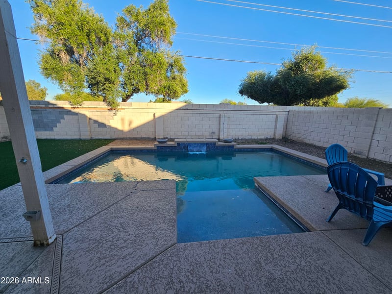 Listing details for 2917 107th Dr, Avondale, AZ 85392 : Welcome to your beautifully refreshed desert retreat in the heart of Avondale! Nestled within a desirable lake community, this charming 3-bedroom, 2-bath home offers the perfect blend of comfort, style, and Arizona lifestyle living at an affordable price. Step inside to discover a bright, freshly painted interior with vaulted ceilings and complemented by tile flooring throughout -- delivering both a modern look and easy maintenance. The updated kitchen shines with newly installed solid surface countertops, ample cabinetry, and a refrigerator included, making it truly move-in ready. Whether you're entertaining friends or enjoying a cozy night at home, this inviting space brings everyone together. The spacious primary suite serves as a relaxing retreat, featuring vaulted ceilings ... and a beautifully remodeled tile shower that adds a spa-like touch to your daily routine. Two additional bedrooms offer flexibility for guests, a home office, or a hobby/exercise space. Outdoors, your private backyard oasis awaits. The pool is ready for sunny afternoons and weekend gatherings. Low-maintenance turf keeps the yard green year-round, while the mature tree and desert landscaping in the front yard provide standout curb appeal with minimal upkeep. Living in a lake community adds an extra layer of charm -- enjoy scenic walking paths, tranquil water views, and a neighborhood atmosphere that feels like a retreat while still being close to shopping, dining, parks, and convenient freeway access. Freshly painted inside and out, thoughtfully updated, and ideally located, this home delivers the complete Arizona lifestyle. Don't miss your chance to make it yours!