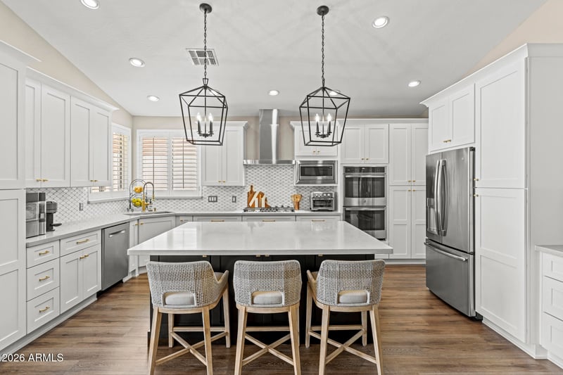 Listing details for 29219 44th St, Cave Creek, AZ 85331 : Exquisitely renovated 5-bedroom, 3-bath, 3,352 sq ft, a 3-car garage, and an oversized lot in a highly desirable Cave Creek location within sought-after Tatum Ranch. This exceptional home stands out with its elevated design, extensive renovations throughout ownership, and unmistakable model-like quality. Every detail has been thoughtfully curated for both beauty and function. The kitchen is the true centerpiece, featuring a stunning quartz island, custom cabinetry, marble backsplash, and abundant storage perfect for gathering and entertaining. Multiple inviting living spaces include a warm family room with fireplace and bar, creating an ideal setting for both quiet evenings and hosting. The upstairs primary suite offers a peaceful retreat with a spa-inspired bath, freestanding soaking tub, glass-enclosed shower, and dual vanities. Step outside to your own private oasis with a sparkling pool, travertine decking, built-in BBQ, lush turf, and a spacious covered patio designed for effortless Arizona living. Home includes a solar lease, offering enhanced energy efficiency and potential savings on monthly utility costs. Ideally located near North Phoenix and Scottsdale, with easy access to shopping, dining, and the 101 & 51 freeways.