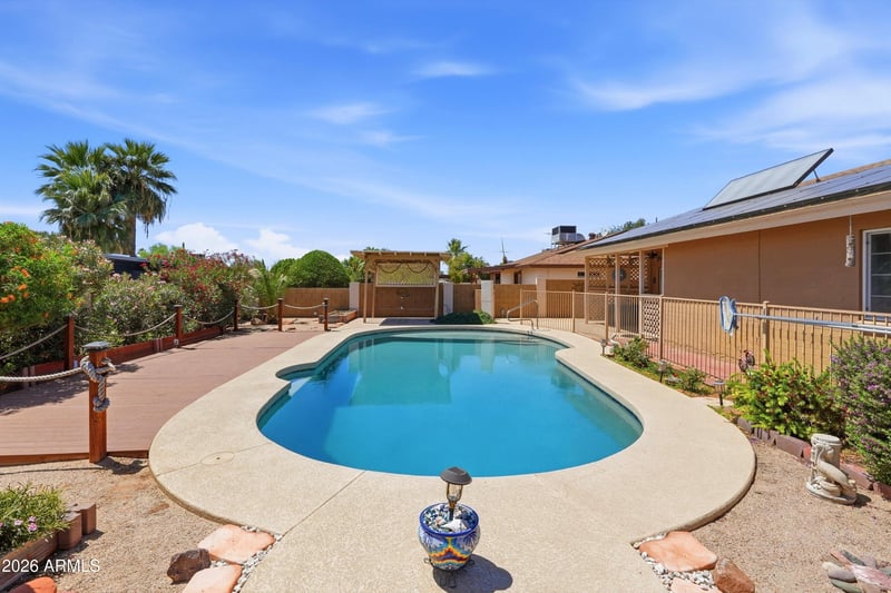 Listing details for 2925 Villa Rita Dr, Phoenix, AZ 85053 : Step into a home that feels bright, open, and built for everyday living. This 3 bedroom, 2 bathroom North Phoenix home offers a seamless layout filled with natural light and comfortable spaces throughout. The family room features a kiva fireplace that adds warmth and character in true Arizona style, while the kitchen opens to the main living areas for easy flow whether you're hosting or enjoying a quiet night in. The backyard is where this home really shines, with a private pool, expansive deck, and multiple areas to relax, entertain, and enjoy the Arizona lifestyle. RV gate provides added flexibility for parking or storage. Located in a desirable North Phoenix neighborhood with no HOA, just minutes from shopping, dining, parks, and quick access to the I17 and Loop 101, this home offers both convenience and a setting you'll look forward to coming home to.