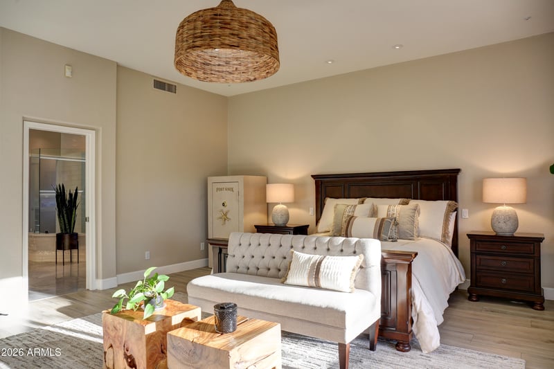 Listing details for 29306 70th Way, Scottsdale, AZ 85266 : Beautiful North Scottsdale home in Scottsdale Vista Estates w/ upgrades galore! Features include 9-foot ceilings, plantation shutters, and a spacious 3-car garage. The freshly remodeled kitchen features double Dacor ovens, built-in Dacor stainless steel refrigerator, gas cooktop, and a view overlooking the expansive backyard. The primary suite includes an electric fireplace and an updated bathroom with a large walk-in shower, soaking tub, new cabinets, and quartz countertops. Situated on an oversized 16,000+ sq ft lot, the backyard offers a sparkling pool and a large covered patio with tongue-and-groove ceiling, perfect for everyday enjoyment and entertaining. All the big ticket items have been replaced: Roof in '24, HVAC units in '24 and '22 and much more!