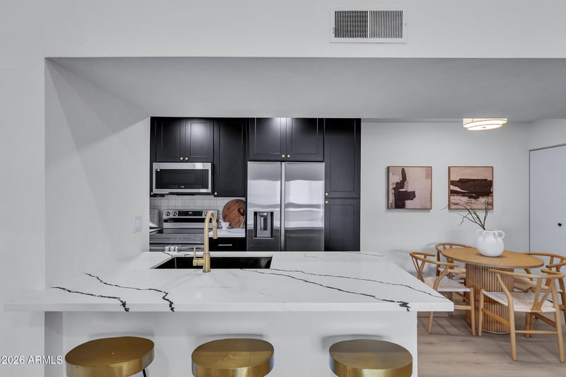 Listing details for 2938 61st Pl #258, Scottsdale, AZ 85251 : STUNNING REMODEL ALERT!! Fully renovated, turn-key cozy home in perfect Scottsdale location! Updated modern kitchen w/ brand new black shaker cabinets, white quartz countertops & new appliances. Upgraded flooring & all new brushed gold fixtures. Huge vaulted ceiling, luxury hallway and master bathroom. LOWEST HOA fee anywhere in this area of Scottsdale, that includes water & sewer. Amenities include beautiful community pool, recently updates with gorgeous travertine & separate spa w/ upgraded lounge chairs & tables. Gym facility & BBQ grills. Lush green grounds, w/ mature trees throughout. Complex is very well maintained & private, nestled around $2M+ homes near Arcadia Proper. This property does allow short-term rentals.