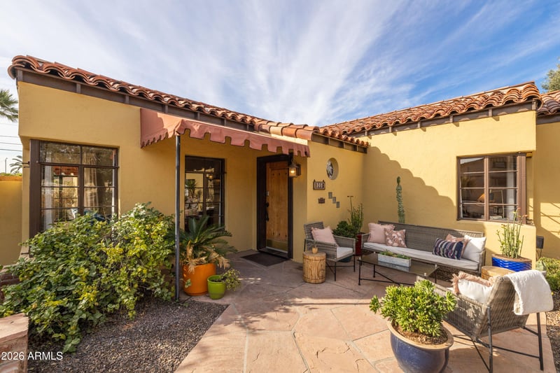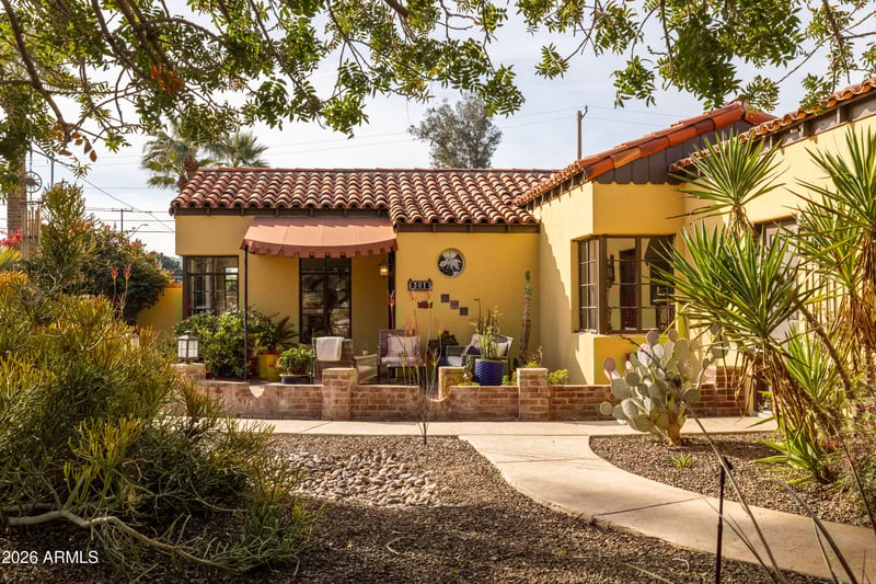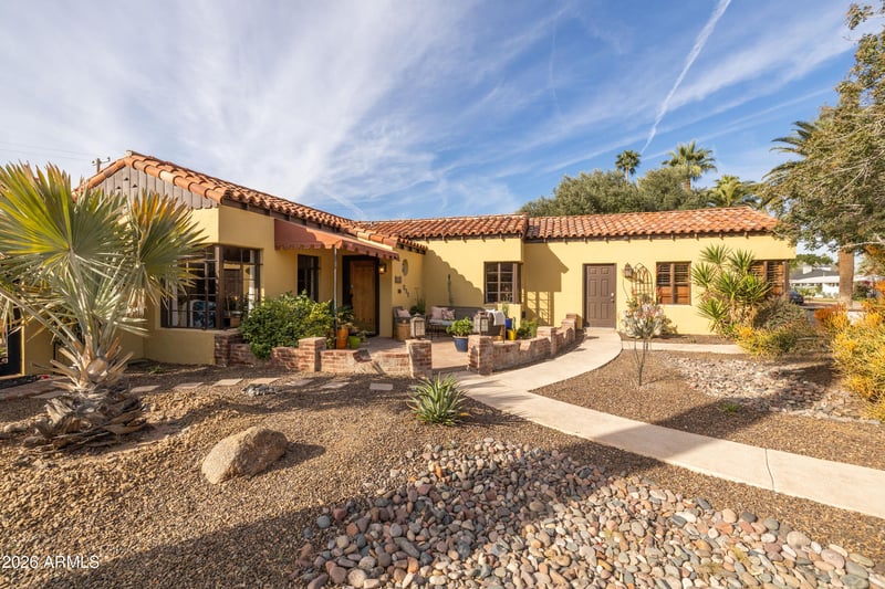 Listing details for 301 Palm Ln, Phoenix, AZ 85003 : WELCOME TO WILLO! Located on a large corner lot, this incredible Spanish home offers beautiful curb appeal with a large front courtyard! Inside you'll discover original hardwood floors, timeless archways, colorful stained glass and amazing large corner windows. A fantastic split floor plan offers very large rooms, excellent storage and designer details throughout. The kitchen has been beautifully updated with new cabinets, stone counters, and features gorgeous exposed brick. The primary suite offers a beautiful attached bathroom, dual closets, soaring ceilings and custom millwork with fantastic views of the backyard. Outside a large covered patio overlooks a stunning pool with great patio spaces, gardens & an outdoor shower. A large attached garage and workshop provides wonderful storage! Walking distance to all your Midtown favorites - Welcome Home!