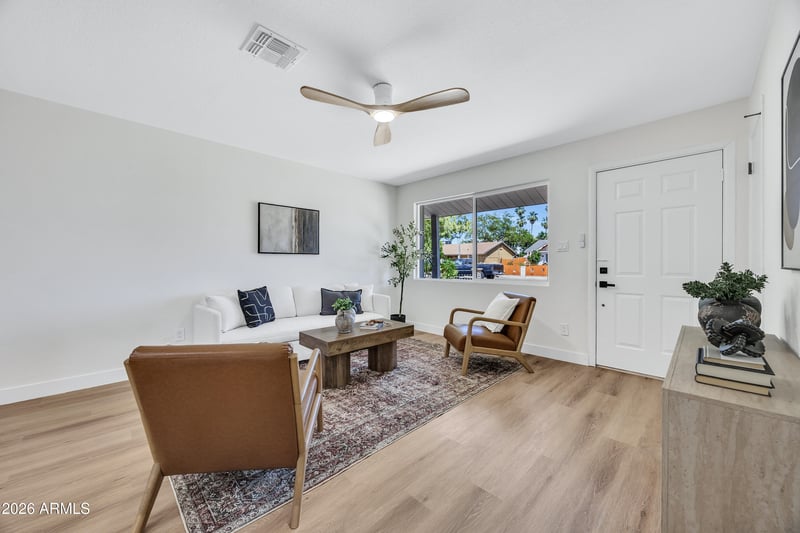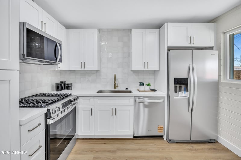 Listing details for 3016 35th Dr, Phoenix, AZ 85019 : Fully renovated and move-in ready! This 3-bed, 2-bath home has been reimagined from the ground up just minutes from downtown Phoenix. Every major system is brand new: new roof, new ac, new dual-pane windows, and fresh interior/exterior paint. The interior features premium new flooring, baseboards, and a modern kitchen with custom cabinetry, quartz countertops, and stainless appliances. Both bathrooms are fully updated with designer tile showers and new fixtures. Outside, enjoy fresh landscape and a massive storage building in the rear, complete with its own sub-panel--perfect for a workshop or extra utility. This turn-key gem offers unmatched value and quality. Don't miss this opportunity to own a completely updated home!