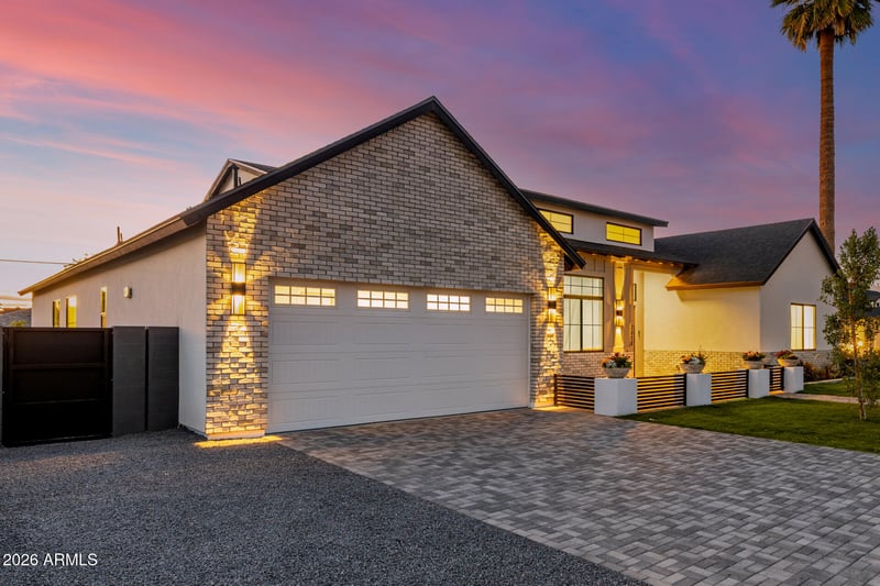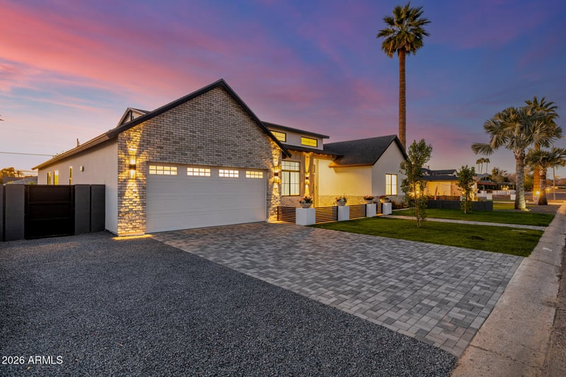Listing details for 3028 47th Pl, Phoenix, AZ 85018 : Experience refined desert living in this brand NEW home designed for both sophistication and relaxation on a ~10k lot. From the welcoming private courtyard to the lush front yard and 2-car garage, every detail sets the tone for what awaits inside. Inside, soaring vaulted ceilings and rich wood floors frame a spacious living room complete with a stylish wet bar and expansive glass doors that create seamless indoor-outdoor flow. The designer kitchen impresses with stainless steel appliances, warm wood cabinetry, gleaming quartz counters and backsplash, a walk-in pantry, and an oversized island with breakfast bar seating. Retreat to the serene primary suite featuring a sitting area, private backyard access, and a spa-inspired bath with dual sinks, soaking tub, glass shower, and walk-in closet A versatile den provides the perfect office or studio. Outside, unwind under the covered patio, cool off in the sparkling pool, or soak in the spa as the desert sky transforms at sunset. Experience luxury at every turn! Start creating lasting memories in this dream home!