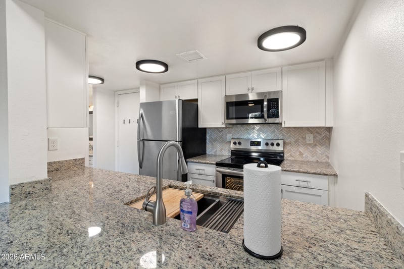 Listing details for 3033 Devonshire Ave #1018, Phoenix, AZ 85016 : *LOCATION*GROUND LEVEL,CORNER UNIT,N/S FACING. PICTURESQUE 1 BEDROOM 1 BATHROOM CONDO IS SITUATED CONVENIENTLY NEAR THE LOBBY AND MAIN ENTRY/EXIT WITH EASY ACCESSIBILITY TO THE ELEVATORS AND MAIL BOXES.BEAUTIFUL VIEWS OF THE COURTYARD,FOUNTAIN AND CAMELBACK MOUNTAINS FROM THE PATIO.REFRESHED AND MODERNIZED IN 2022,NEWER A/C UNIT,GRANITE COUNTERTOPS,KITCHEN CABINETS W/SELF-CLOSE DRAWER SLIDES,STAINLESS APPLIANCES,FIXTURES,LAMINATE FLOORING THROUGHOUT,EXQUISITE WALK IN SHOWER W/BENCH,FULL SIZE VANITY & PRIVACY DOOR.SENIOR LIVING 55+ PLUS*RENTALS OK*LOVELY CONDO NESTLED BETWEEN ARCADIA AND THE BILTMORE WITHIN WALKING DISTANCE OF SHOPPING, RESTAURANTS AND SENIOR CENTER,WELL MAINTAINED GROUNDS,EXERCISE FACILITY,LIBRARY SITTING AND CONFERENCE ROOMS,COMMUNITY BACKS RIGHT UP TO LOS OLIVOS PARK