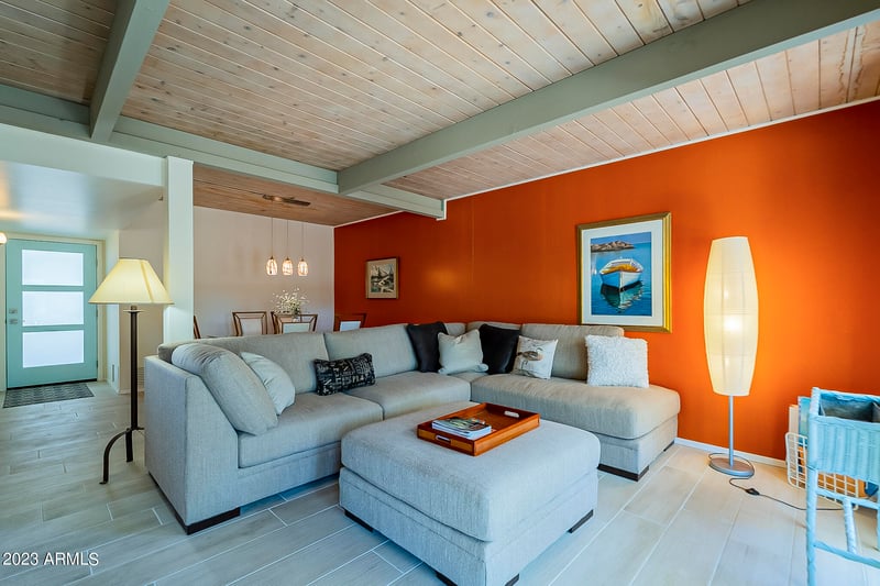 Listing details for 3045 62nd St, Scottsdale, AZ 85251 : Lovely well maintained mid-century townhome in the sought-after community of Golden Keys, just 10 mins to Old Town Scottsdale and 15 mins to Airport. Designed by noted architect Ralph Haver, this home features great light, original wood ceilings and exposed beams, private attached carport, generous room proportions and a BONUS ROOM with potential for a workshop, garage, studio or office. Tranquil private backyard with mature landscaping, perfect for enjoying the AZ weather. This home has many updates including new ROOF, Trane HVAC, wood-look tile flooring, tiled bathrooms, granite countertops, exterior doors, exterior paint, new dishwasher, electrical updates. Most furniture available by separate bill of sale.