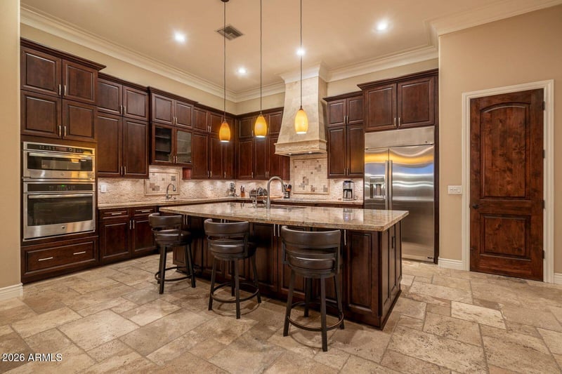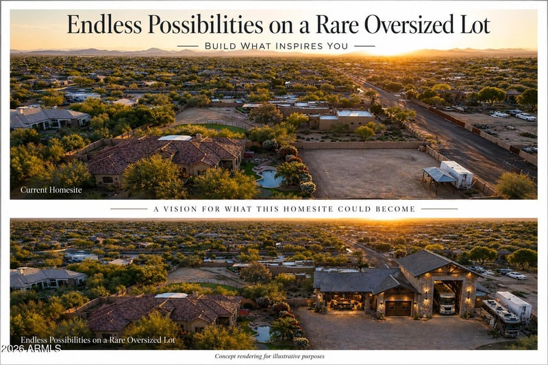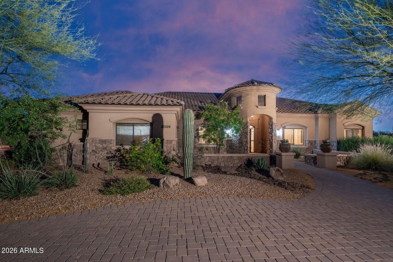 Listing details for 30504 57th St, Cave Creek, AZ 85331 : This is an entertainment house built by a true craftsman The level of detail shows up everywhere you look layered crown molding rich cherry cabinetry and doors custom built ins and tumbled travertine floors laid in a Versailles pattern Even the outdoor spaces carry that same finish level with warm tongue and groove wood plank ceilings across the covered patios The kitchen family room and great room all flow together anchored by a dramatic wall of glass that opens to the covered patio It feels like one continuous space inside to outside and back again The backyard is designed for real use pool spa sauna firepit fireplaces and multiple patio areas give you room to spread out The commercial grade misting system keeps things cool in the summer and built in heaters extend the space into the winter Comfortable year round and built for gatherings celebrations and quiet nights under the stars Inside the layout gives you both connection and privacy 4 bedrooms all with direct bath access plus a study and a separate playroom with wet bar The kitchen is built for function with two sinks extensive cherry cabinetry a large walk in pantry and storage throughout The oversized 4 car garage is a major advantage with extra depth storage and plenty of room for vehicles and toys The circular paver drive and paved road access provide a strong sense of arrival and plenty of parking for guests Set on a county island with no HOA the property offers flexibility that is hard to find Short term rentals are allowed opening the door to Airbnb or VRBO potential The property also includes a rare oversized lot area that opens the door to a wide range of possibilities The space is already set up with electric and plumbing in place allowing the next owner to move forward without starting from scratch This area can easily be transformed into a custom guest house RV garage workshop or a true man cave designed to fit your lifestyle For those interested in horses the lot can be configured with barn paddocks turnouts and riding space creating a private setup that is hard to find in this area The flexibility here is what makes it special You are not locked into one use You have the ability to design and build exactly what fits your needs over time Whether you are looking for additional living space storage recreation or a long term value add this portion of the property provides a unique opportunity to expand and customize in a way most homes simply cannot offer This home brings together quality and flexibility in a way that is hard to find Live in it full time use it as an Airbnb create a separate Airbnb space add horses build a man cave or simply enjoy it as the ultimate entertainment property All of this set right in the heart of Cave Creek and close to everything North Phoenix has to offer A rare combination of craftsmanship indoor outdoor living and long term potential built to be enjoyed and built to last. SIGNATURE FEATURES Built by a true master craftsman Seamless indoor outdoor living design 4 covered patios with tongue and groove wood plank ceilings Resort style backyard with pool spa sauna firepit putting green and fireplaces Commercial grade misting system and built in patio heaters Oversized lot with expansion potential No HOA Airbnb and VRBO allowed Black Mountain views HOW THIS HOME LIVES The way the kitchen family room and patio all connect as one space Outdoor living with misters in the summer and heaters in the winter Evenings on the patio under the stars Hosting celebrations birthdays and gatherings with space for everyone A layout that allows both togetherness and privacy Hot tub and sauna just outside the primary suite Plenty of parking for family and guests PROPERTY OVERVIEW 4486 square feet 4 bedrooms 3.5 bathrooms All bedrooms with direct bath access Study plus playroom with wet bar Oversized 4 car garage ARRIVAL AND EXTERIOR Paved road access Circular paver driveway Front courtyard entry Solid iron front door Stone accented exterior Mature landscaping ARCHITECTURE AND BUILD QUALITY Built by woodworking craftsmen with exceptional detail Extensive crown molding throughout Coffered ceilings in great room dining and primary 13 foot kitchen ceiling Great room wall of glass feature Cantera stone fireplace and hearth Custom built ins throughout INTERIOR FINISHES Tumbled travertine flooring throughout laid in a Versailles pattern Rich cherry cabinetry and doors throughout Slab granite countertops throughout Stacked stone backsplash Nickel hardware finishes Built in dining buffet KITCHEN FEATURES Two kitchen sinks Extensive cabinet space Large walk in pantry Trash compactor Lazy Susan corner cabinet Under cabinet lighting GE appliances Reverse osmosis system ENTERTAINMENT AND LIVING SPACES Open concept great room with built ins Playroom with wet bar and kegerator Strong indoor outdoor flow Three refrigerators included OUTDOOR LIVING Four covered patios with warm tongue and groove wood plank ceilings Pool and hot tub Infrared sauna Built in firepit and fireplaces Outdoor kitchen with stainless BBQ Water feature Commercial grade misting system Built in patio heaters GARAGE AND STORAGE Oversized extra deep 4 car garage Epoxy floors Built in storage cabinets Side mounted garage door openers Sink in laundry for garage and utility use Tons of storage throughout INFRASTRUCTURE AND SYSTEMS 400 amp electrical service Two HVAC systems installed 2013 One HVAC with new compressor Aquasana whole home water filtration Reverse osmosis system Propane tank for cooktop and fireplaces Septic system serviced approximately 2 years ago Two zone irrigation system LOT AND FUTURE POTENTIAL Separate oversized lot area Electric and plumbing already installed Plans available for future structure Ideal for guest house RV garage workshop or man cave Horse property potential with room for barn paddocks and turnouts Existing storage shed included LOCATION AND LIFESTYLE County island loc