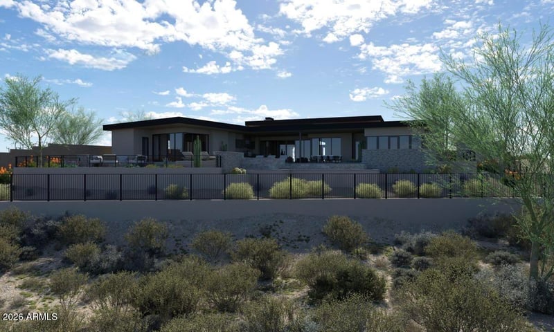 Listing details for 30555 120th Ln, Peoria, AZ 85383 : Brand-new custom estate in the exclusive gated community of Blackstone offers 5,248 sq ft of refined living and 7,684 sq ft under roof. This 4 bed, 5.5 bath residence with 4-car garage, executive office, and formal dining blends organic materials with modern design--evoking the desert luxury of a boutique resort. The Great Room features soaring 15-ft ceilings, a dramatic fireplace wall, and a wall of glass that opens to a spectacular two-level resort backyard with pool, raised spa, firepit lounge, and expansive covered patio with outdoor kitchen. The Chef's Kitchen showcases white oak cabinetry, quartzite surfaces, Wolf and Cove appliances, prep kitchen, and walk-in pantry. The stunning Primary Suite offers exceptional views, a spa-like bath, dual water closets, and dual walk-in closets. Every bedroom features its own en-suite bath, including a second master suite. The formal dining room opens to a charming front courtyard and includes a built-in wine bar, while the executive office with French doors and walk-in closet can easily convert to a fifth bedroom. Every bathroom in the home has been thoughtfully designed with distinctive style and detail. This custom home is like nothing else that has been available in Blackstone.