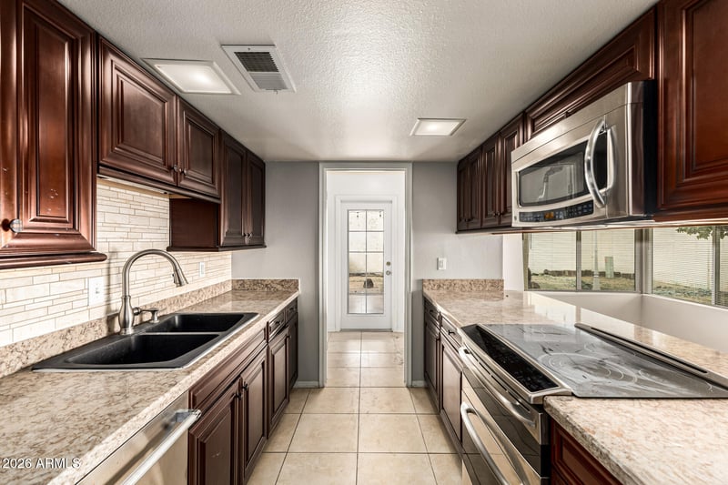 Listing details for 3108 Clinton St, Phoenix, AZ 85029 : A gated front patio welcomes you into a spacious interior featuring tile flooring, neutral finishes, and comfortable living and dining areas. The kitchen offers wood cabinetry, granite countertops, a stylish backsplash, stainless steel appliances, a pantry, and two breakfast bars--perfect for both everyday living and entertaining. The primary suite includes private outdoor access and an en-suite bath. Step outside to a cozy backyard with an extended covered patio, ideal for relaxing or hosting guests. Complete with a 2-car garage, this home is a fantastic opportunity you won't want to miss.