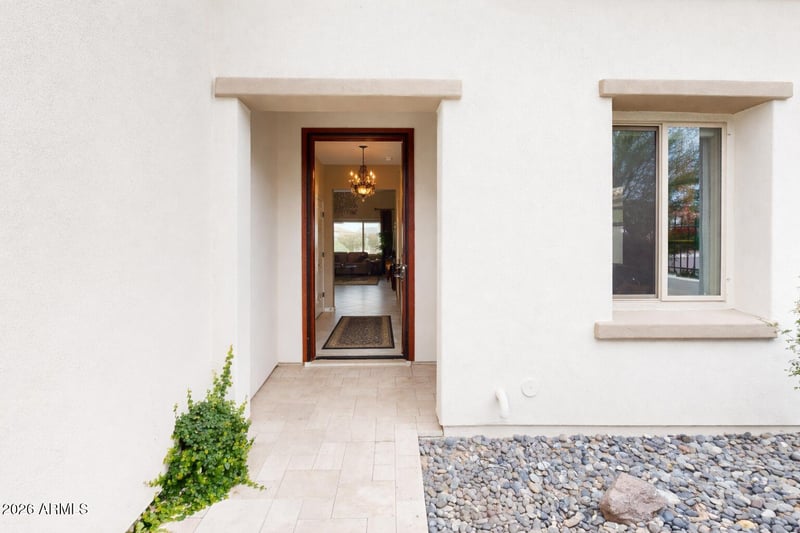 Listing details for 31156 137th Ln, Peoria, AZ 85383 : Welcome to an extensively upgraded 5-bedroom, 3.5-bath residence offering 3,179 square feet of thoughtfully designed living on a premium view lot in highly sought-after Vistancia. This is not simply a beautifully maintained home -- it is one that has been intentionally enhanced with meaningful system upgrades, curated finishes, and smart-home integrations throughout. From the moment you enter, soaring ceilings and expansive living spaces create an immediate sense of openness and architectural presence. The great room is anchored by a striking chandelier, complemented by custom bronze AC grates and warm, layered lighting that adds richness and depth to the space. The kitchen is both refined and functional -- designed for entertaining as much as everyday living. Granite countertops, upgraded cabinetry with ambient upper and lower lighting, pull-out lower cabinets, and a large commercial-grade sink create exceptional usability. Double ovens with remote capability, a Zephyr range hood, wine refrigerator, reverse osmosis system, and owned soft water system elevate both convenience and performance. Amber pendant lighting completes the space with warmth and character.