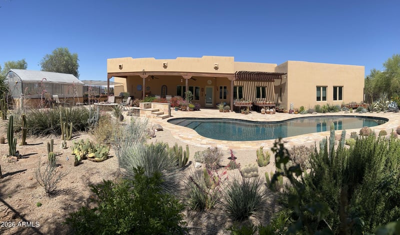 Listing details for 31221 61st St, Cave Creek, AZ 85331 : Tucked into the natural beauty of Cave Creek.Thoughtfully designed single-level home on 1+ acre with full ADA compliance and no HOA. Custom 42'' wide doorways throughout and an easy-rolling, one-level floor plan provide seamless accessibility and everyday comfort. Open living areas flow to the outdoors, featuring a private pool ideal for relaxing or entertaining. A dedicated greenhouse adds a unique touch for gardening or sustainable living. Set in a peaceful desert setting with convenient access to Cave Creek amenities, dining, and outdoor recreation. A rare opportunity for accessible, well-planned Arizona living.3 car climate controlled garage,220,extra height door and storage.