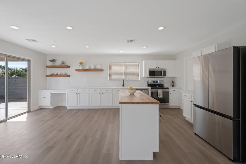 Listing details for 3123 Calle Noventa --, Mesa, AZ 85212 : Welcome to this beautifully updated 3,360sf home featuring 4 beds, 2.5 baths, a private office, & a spacious loft, situated on a generous lush 7,429 sf lot. Thoughtfully remodeled & truly move-in ready, this home showcases brand-new flooring throughout w/ modern baseboards & fully remodeled bathrooms, including a luxurious primary suite w/ an oversized tiled shower & dual shower heads. The remodeled kitchen is complete w/ quartz countertops, a stylish tile backsplash, butcher block island, open wood shelving, ss appliances & a large walk-in pantry. The main level offers a full office w/ French doors while the upstairs loft provides flexible space for a media room, play area, or additional living space. The expansive primary bedroom suite offers room for a second office, workout area, or sitting space. Bedrooms 2 & 3 are generously sized, while bedroom 4 includes a large walk-in closet, providing comfort & storage for everyone. The backyard is perfect for entertaining, gardening, & play. Enjoy the extended covered patio, stamped concrete walkways, raised garden beds & mature citrus trees including lemon, orange, grapefruit, and even grapevines. Large storage shed offers ample space for tools, toys, and overflow storage. Additional updates include 2-year-old upstairs A/C & a brand-new water heater & epoxied garage floors. Ideally located near the Loop 202 freeway, this home offers quick access to Mesa & Gilbert's top shopping, dining, golf, as well as easy access to downtown Phoenix, & Sky Harbor Airport. With space, style, & an unbeatable location, this home truly has it all.