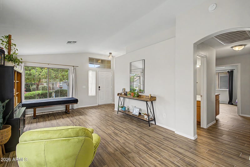 Listing details for 31303 Claridge Cir, San Tan Valley, AZ 85143 : Golf course home in the Lakeview community of Johnson Ranch! This well maintained 3-bedroom, 2-bath home offers the perfect blend of comfort, convenience, and stunning views. Featuring wood-look tile throughout, the home delivers a modern, cohesive feel.