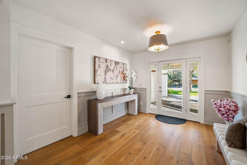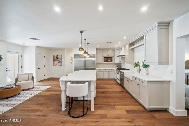 Listing details for 3131 53rd Pl, Phoenix, AZ 85018 : A second home to Harrison Butker, the Kansas City Chief's kicker, this single-level Arcadia estate sits on a larger lot along a quiet, established, eucalyptus-lined street with Arcadia charm. Mornings unfold slowly around the expansive kitchen island, evenings come alive by the outdoor gas fire pit & weekends are spent swimming in the newly renovated pool or lounging under the oversized ramada. The wood floor flows throughout the single level estate connecting the open concept to the private bedrooms. Enjoy the benefits of living close to the canal, Scottsdale Fashion Square Mall, AJ's, The Henry, Global Ambassador, Phoenix Sky Harbor airport & major freeways. The spirit of this house shines through from the moment you enter! No HOA (: