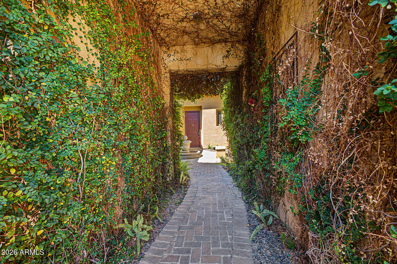Step outside to your own backyard oasis complete with a sparkling pool, hot tub, and built-in BBQ--perfect for hosting or unwinding in Arizona's beautiful weather. A gated garden entry with a tranquil fountain sets a warm, inviting tone, while the home's location diagonally across from the neighborhood park adds both convenience and charm.