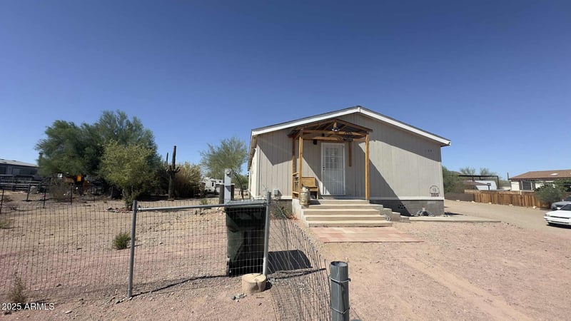 Listing details for 31819 165th Ave, Surprise, AZ 85387 : Charming 3-bedroom home on nearly 1 acre with stunning mountain views and natural desert landscaping. Enjoy sunsets and distant city lights from the wraparound patio. Mostly fenced—perfect for horses, RVs, and toys. Includes a shed and carport.