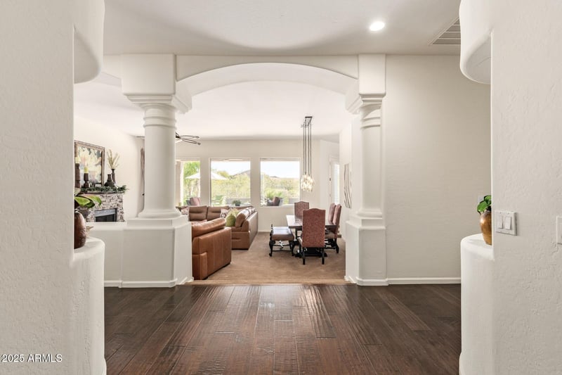 Listing details for 31859 53rd St, Cave Creek, AZ 85331 : Discover a rare blend of luxury, tranquility, and desert beauty in this fully remodeled 5-bedroom, 3-bath home. Set within a quiet, peaceful gated neighborhood and backing directly to the untouched desert, this property offers sweeping natural views, unmatched privacy, and a serene atmosphere. Inside, the home radiates warmth and sophistication. Sunlight pours through large windows and draws your eye toward the natural landscape outside. At the heart of the home is a luxurious chef's kitchen. Custom high-end cabinetry with intelligently designed storage pairs beautifully with gorgeous stone countertops, a large entertainer's island, and professional appliances including a Wolf induction cooktop with downdraft, Wolf double convection ovens, Wolf warming drawer, built-in Sub-Zero (cont.) refrigerator, and a dedicated wine fridge. It's a space that invites cooking, conversation, and connection. The open-concept living areas are enhanced with premium plantation shutters, rich flooring, and an elegant electric fireplace, creating an inviting atmosphere perfect for both intimate evenings and lively gatherings. The split floor plan offers privacy and comfort, leading to a luxurious primary retreat. Here, you'll find a spa-inspired bathroom featuring a frameless glass shower, freestanding soaking tub, and marble flooring, complemented by an extensive walk-in closet designed for exceptional organization. Outdoor living reaches new heights with a fully equipped outdoor kitchenincluding a built-in BBQ, two-burner cooktop, and beverage fridgeas well as a striking fireplace that can be enjoyed as gas or wood-burning. Relax by the heated pool with its soothing water feature or unwind in the heated spa. Travertine hardscape and custom motorized patio screens allow you to create a fully enclosed outdoor sanctuary at the touch of a button. This home is as efficient as it is beautiful, boasting owned solar (2018), a tankless water heater, whole-house water softener and filtration system, and a new pool pump. The 3-car garage features epoxy flooring and built-in cabinetry, offering exceptional storage and functionality. A newer roof (2018) provides added peace of mind. Nestled within a tranquil gated community surrounded by natural desert beauty, this home blends luxury, privacy, and comfort into one unparalleled living experience. A rare offeringwhere impeccable craftsmanship meets an extraordinary setting.