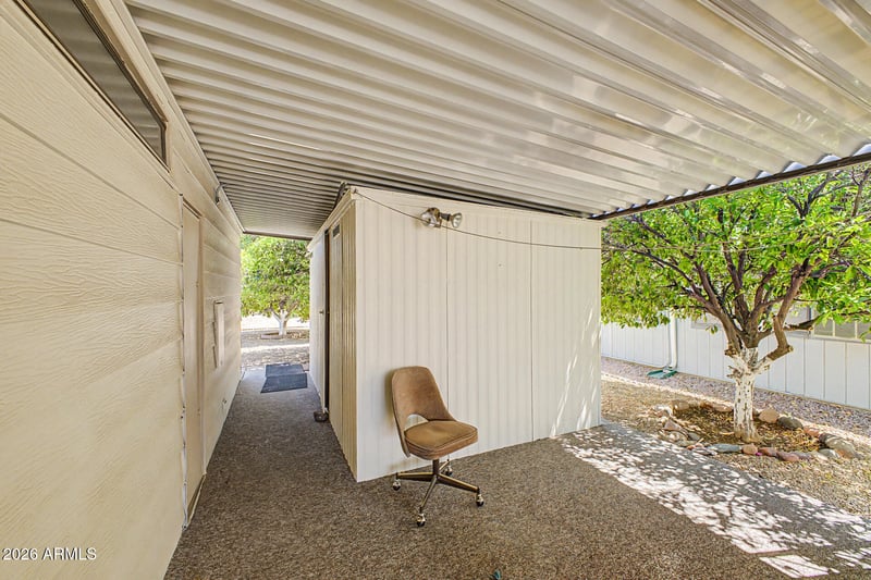 Listing details for 321 Arroya Cir, Mesa, AZ 85206 : You own the land! Affordable housing in a quiet 55+ community. Cul-de-sac location. Close to shopping, healthcare, freeway access. Offers a community clubhouse and pool. Washer/dryer/fridge included. Stove is nearly brand new. Nice large awnings on each side of the home. Shed with lock for storage or a workspace. AC compressor replaced 4 yrs ago. Roof redone 4 years ago.