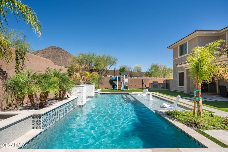 Listing details for 32130 126th Ave, Peoria, AZ 85383 : Functionality, pristine condition, and a rare opportunity in the Mystic community of Vistancia. Positioned on one of the largest corner lots, this home offers a layout designed for both everyday living and effortless flow. The expansive main-level primary suite serves as a true retreat, featuring a spacious and well-appointed design that feels both comfortable and refined. Upstairs, a split floor plan provides additional privacy along with flexible living space to fit a variety of needs. Two dedicated office areas offer versatility for work, wellness, or creative use. The open-concept design connects seamlessly to a resort-style backyard with a custom pool, expansive hardscaping, and stunning mountain views. Clean lines, elevated finishes, and intentional design makes this home standout!