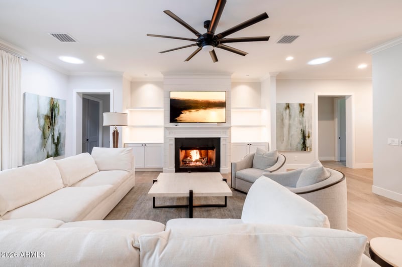 Listing details for 3216 Weldon Ave, Phoenix, AZ 85018 : Modern farmhouse perfection in the coveted Pomelo Park neighborhood set on a nearly 17,000 sq ft oversized lot. This five-bedroom, four-bath residence with dedicated office blends sophisticated design with effortless functionality. The open floor plan showcases soaring ceilings and a stunning chef's kitchen featuring premium Thermador appliances, an oversized island, and an expansive walk-in pantry; perfect for both everyday living and entertaining. The serene primary retreat offers spa-like amenities including a soaking tub, walk-in shower, dual vanities, custom closets, and a private infrared sauna, creating a true sanctuary within the home. Just off the primary suite is a private office with furnished desk/cabinetry and electric fireplace including a sitting area. There is also access to a covered patio with fireplace; perfect for morning coffee or quiet evenings. Step outside to an oversized backyard oasis rarely found in Arcadia, complete with lush grass, mature trees, a newer pool, and an incredible fully equipped outdoor kitchen designed for entertaining. Combined with an automated RV gate and retractable shades and generous patio space and room to gather, the backyard creates the ultimate setting for relaxing or hosting under the Arizona sky. The climate controlled 2 car garage converts easily into a 3 car with an auto stacker car lift and wired for an electric vehicle; perfect for the car enthusiast. Elegant, functional, and ideally located on a charming street in Pomelo Park just minutes from all the best Arcadia and Biltmore dining, shopping, and hotspots, this home truly delivers the sought-after Arcadia lifestyle.