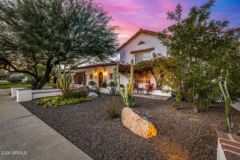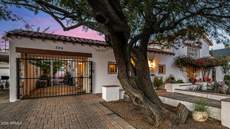 Listing details for 326 Cypress St, Phoenix, AZ 85003 : Just listed in the highly coveted Willo Historic District. Known as ''El Padre,'' this iconic 1928 Spanish Mission Revival home-originally built by F.P. Baldi and historically recognized as the Baily & Upshaw Spec House-is a true architectural landmark. Concrete masonry construction, stucco exterior, and a high-pitched clay tile roof with exposed rafters anchor its timeless design, while arched entry details, Talavera tile accents, custom wrought iron, and dramatic windows complete the Spanish electric style. The home's significance is reflected in its multiple magazine features, including three cover appearances since 2016 and recognition by Phoenix Home & Garden. Inside, original character blends seamlessly with thoughtful modern upgrades. Highlights include a grand foyer with hand-hewn beams, Saltillo flooring, and skylights; an elegant ballroom with soaring ceilings and original wood floors; and a beautifully updated kitchen featuring solid surface counters, a nook, & hand-painted Talavera tile, premium appliances, and restored ceilings. The primary suite offers a spa-like bath with heated floors and custom finishes, while the outdoor spaces showcase a heated and chilled saltwater pool (2022), brick pavers, custom ironwork, and updated mechanical systems, preserving historic charm while delivering today's comfort and convenience. You can't beat the location of this home & you have a chance to own a piece of history. It's an amazing neighborhood with quick access to popular restaurants and the Art district.