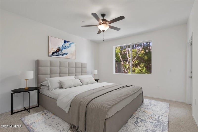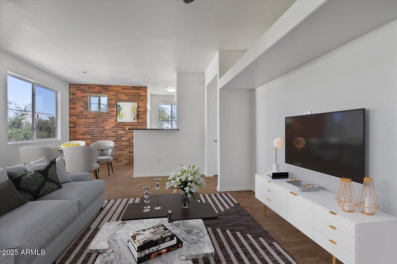 Listing details for 3302 7th St #319, Phoenix, AZ 85014 : $3,000 buyer incentive available to help with closing costs or an interest rate buy-down. Live the low-maintenance Midtown Phoenix lifestyle in this top-floor 2-bedroom, 2-bath condo located in a gated community with resort-style amenities. Bright, open, and move-in ready, this home features fresh paint, updated flooring, modern finishes, and a layout designed for easy everyday living. The kitchen opens seamlessly to the living and dining spaces, while natural light fills the main living area and flows to your private covered balcony. Two spacious primary suites offer walk-in closets and private bathrooms, creating comfortable retreats with both privacy and function. All appliances are included, making your move simple and stress-free from day one. Beyond your front door, enjoy the ease of true lock-and-leave living with resort-style amenities including a sparkling pool and spa, fitness center, clubhouse, BBQ areas, billiards room, private movie theater, covered parking, and the security of a gated community. Grab coffee around the corner, meet friends for dinner, take the dog to the park, or enjoy a quick commute with hospitals, shopping, entertainment, and light rail access all nearby. Whether you are a first-time buyer, seasonal resident, downsizing, or investing, this Midtown condo offers the kind of connected, low-maintenance lifestyle you are searching for.