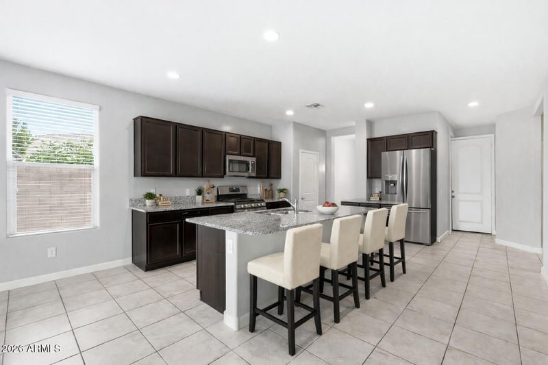 Listing details for 33273 Bowles Dr, San Tan Valley, AZ 85144 : Welcome home to this spacious 4-bedroom, 2.5-bath property located near the beautiful San Tan Mountain range! This move-in ready two-story home features an open floor plan with a bright kitchen showcasing granite countertops, espresso cabinetry, a large center island, and stainless steel appliances. The versatile bonus room can easily be transformed into a movie room, home office, den, or even a 5th bedroom — offering flexibility for your lifestyle needs.