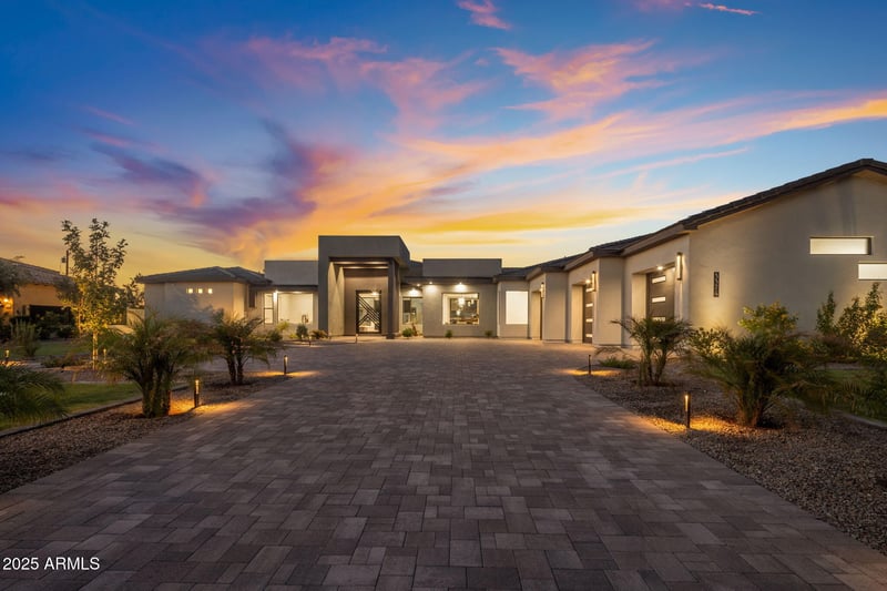 Listing details for 3374 Aquarius Ct, Chandler, AZ 85249 : Stunning NEW custom home by Picasso Homes in the prestigious GATED community of Bela Flor. The 5 bedroom, 5.5 bath, 4 car garage home offers an incredibly spacious layout and all secondary bedrooms include in suite bathroom access. There's a separate office, formal dining, expansive open great room and handsome fireplace and gourmet kitchen, Thermador appliances, custom cabinets, and extra walk in pantry. The primary suite includes an oversized closet. Outside your backyard oasis offers a large covered, pavered patio, swimming pool/spa and built in BBQ and firepit. You will want to make this dream home yours.