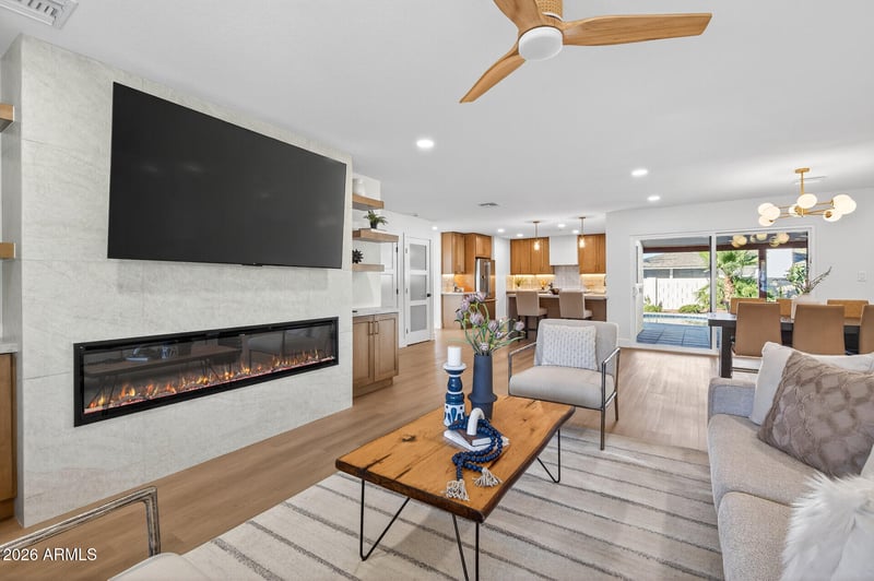Listing details for 3402 Mercer Ln, Phoenix, AZ 85028 : Completely remodeled and move-in ready, this stunning Phoenix home near Shea Blvd blends modern luxury with effortless comfort. Offering 3 bedrooms, 2 beautifully updated bathrooms, and 1,640 square feet of thoughtfully designed living space, every detail has been carefully curated with high-end finishes throughout. The spacious primary suite is a true retreat, featuring a spa-like bathroom and a sliding glass door that opens directly to the backyard—perfect for indoor-outdoor living. The open and inviting layout flows seamlessly into a large backyard designed for entertaining, complete with a sparkling pool finished with brand-new PebbleTec. From the elegant upgrades to the expansive outdoor space, this home delivers style, functionality, and Arizona living at its finestall in a highly desirable location close to Shea Blvd.