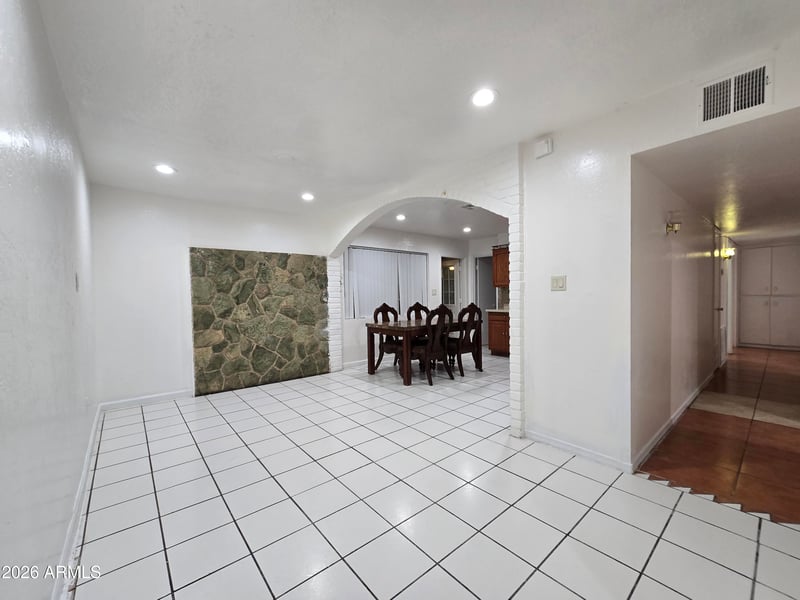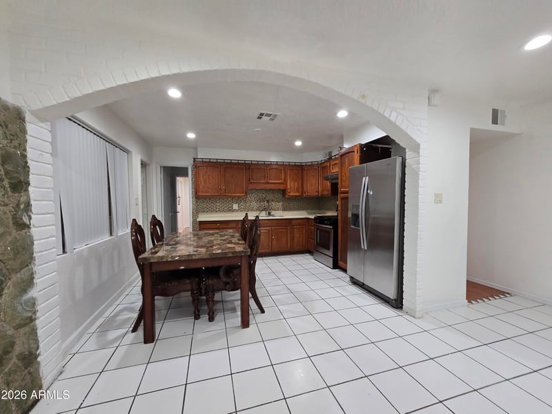 Listing details for 3420 Maryland Ave, Phoenix, AZ 85017 : This spacious home features 5 bedrooms, 1.75 bathrooms, and a well-sized dining area. The interior includes tile flooring and an inside laundry area located in the home's addition. Part of this added space also provides an extra area which can serve as a large closet to the 5th bedroom — as well as a separate storage room. The exterior offers a one-car carport, a four-car parking slab, a backyard with block walls, and a gated block wrought iron fence in the front.