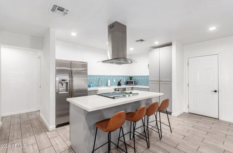Listing details for 3502 Garfield St, Phoenix, AZ 85008 : This single-family home features a fully functioning attached guest house, effectively creating a duplex-style layout with two full kitchens and two in-unit laundry setups, ideal for flexible living or dual short-term rental use. Both units are currently operating as successful short-term rentals, providing immediate income potential. The property can also be sold fully furnished with a separate bill of sale, offering a true turnkey opportunity. Situated on one of the largest lots in the neighborhood, the outdoor space is designed for entertaining, complete with a diving pool, volleyball court, low-maintenance turf, and expansive yard. Additional highlights include a one-car garage and rear RV parking. Perfect for investors or owner-occupants seeking a versatile space.
