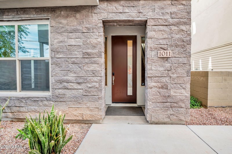 Listing details for 3510 Miller Rd #1011, Scottsdale, AZ 85251 : Stylish three-level townhome in a prime Old Town Scottsdale location offering walkability, views, and flexible living spaces. The entry level features a versatile bonus living area with a full bath, wet bar, and direct access to a private patio with turf and BBQ space, plus an attached two-car garage. The main level showcases an open, light-filled living area flowing into a beautifully appointed kitchen, a convenient half bath, and two private patios — including views toward the Giants' spring training stadium. The top floor serves as a private retreat with a spacious primary suite featuring an ensuite bath, walk-in closet, and private patio with Camelback Mountain views, along with a secondary bedroom with its own ensuite and an upstairs laundry area. Ideal as a full-time residence, loc -and-leave, or investment opportunity in one of Scottsdale's most sought-after areas!