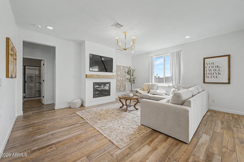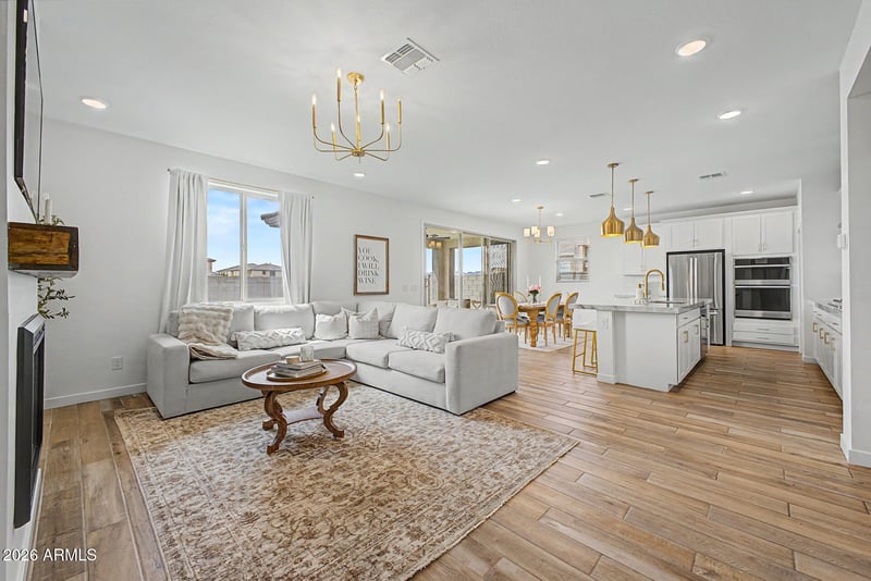 Listing details for 3530 181st Ave, Goodyear, AZ 85338 : You'll love this stunning two-story home with a pool in Citrus Park, perfectly positioned on a premium lot with no neighbors behind. Offering 5 bedrooms, 4 bathrooms, and a 3-car garage, this home features a bright open layout with 9-foot ceilings, luxury plank flooring, and upgraded finishes throughout. The chef's kitchen impresses with Taj Mahal countertops, a 5-burner gas cooktop, walk-in pantry, coffee bar, and high-end appliances. Enjoy flexible living with a den, loft, and a convenient mudroom. The spacious primary suite includes two walk-in closets, a spa-style shower, and direct laundry access. Step outside to a resort-style backyard with real grass, an extended patio, and a Presidential pool, perfect for entertaining. Located in a walkable community with parks, pickleball, basketball courts, and a pool, this home blends comfort, style, and functionality.