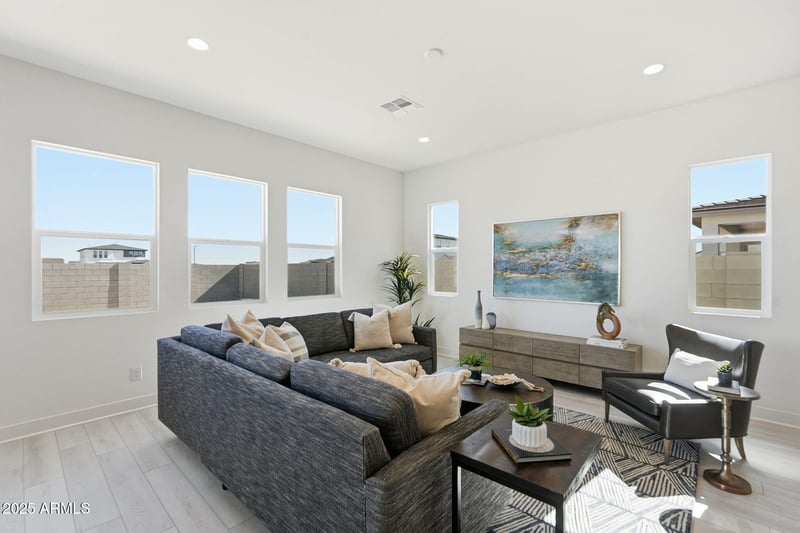 Listing details for 35513 Tin Ct, San Tan Valley, AZ 85144 : Experience contemporary design in a versatile living space with this move-in ready home. A well-appointed kitchen boasts stainless steel appliances, quartz countertops, and ample storage space. The open-concept great room is the perfect atmosphere for entertaining, with connectivity to the dining area and expansive views of the outdoor living space. A private flex space extends the possibilities of this home, creating plenty of space for personalization. The home is complete with designer curated finishes. Explore everything this exceptional home has to offer and today!