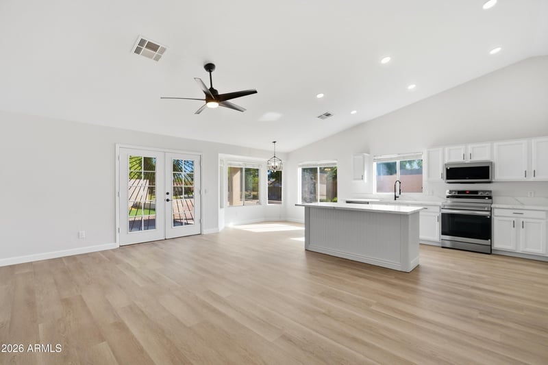 Listing details for 3596 Thornton Ave, Gilbert, AZ 85297 : Beautifully updated single-story home in desirable Coronado Ranch offering a clean, modern feel and functional layout. Inside, you'll find fresh interior paint, new baseboards, new light fixtures, and durable new LVP flooring throughout. The kitchen has been thoughtfully upgraded with updated cabinets, new quartz countertops, and new stainless range, microwave, and dishwasher, opening seamlessly to the main living areas for easy everyday living and entertaining. Both bathrooms have been refreshed. New HVAC system for year-round comfort. The backyard has been enhanced with new sod, providing a great space to relax or entertain outdoors. Fresh exterior paint is in progress pending HOA approval. This well-appointed 4-bedroom, 2-bath home combines style, comfort, and location.
