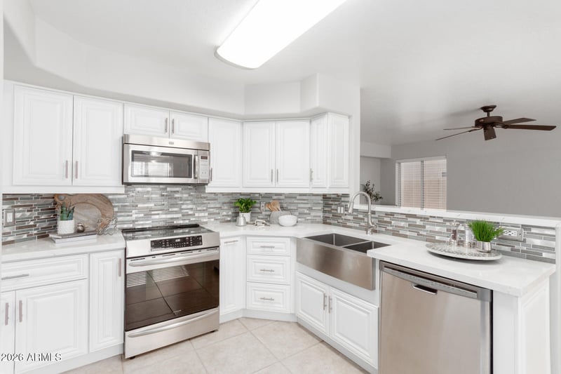 Listing details for 3611 Windmere Dr, Phoenix, AZ 85048 : The search is over! Meticulously updated home in the prestigious Lakewood Estates. This stunning 3-bedroom, 2.5 bath home with spacious open loft (4th bdrm because of closet). Fall in love w/ the inviting living room w/ soaring vaulted ceilings, all fresh paint & carpet just installed t/o! Remodeled kitchen & baths provide for perfect home for entertaining and everyday living. Boast Quartz & Granite counters, mosaic tile backsplash, stainless steel appliances and sunshine filled breakfast nook! Upstairs, the loft is ideal for a lounge or office space. The bright main bedroom features balcony access, a walk-in closet, & remodeled bath! Spend enchanting evenings in the backyard, complete w/sparkling refinished pool . Many upgrades..HVAC 2020 incl. EV car charger connection. Walk to Lake! Gorgeous community with walking paths, two lakes for catch and release and as a community member you can place your kayaks or paddle boards in for an afternoon of fun! Walking distance to playgrounds on the water for children, excellent schools!