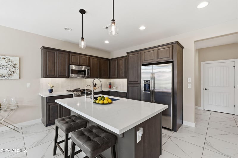 Listing details for 36148 Edelweiss Ln, Queen Creek, AZ 85140 : Resort living at its finest, and it shows from the moment you arrive. This beautifully updated home in the heart of Encanterra Country Club sits on an oversized lot and has been thoughtfully upgraded, giving it a truly like-new feel. Fresh interior and exterior paint create a crisp, clean canvas, while the brand-new countertops and kitchen backsplash elevate the space with stylish, modern elegance. Light, bright, and easy to maintain with beautiful tile flooring throughout, you can start enjoying the Encanterra lifestyle right away. Perfectly positioned within close proximity to both clubhouses. Sellers are golf members, so skip the waiting list. World-class amenities await: Championship golf, resort-style pools, the Alvea Spa, pickleball, dining, and a packed social calendar.
