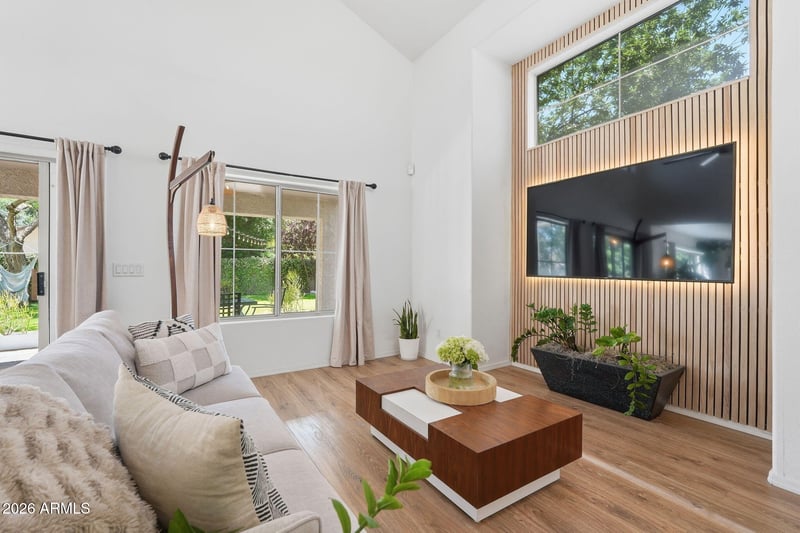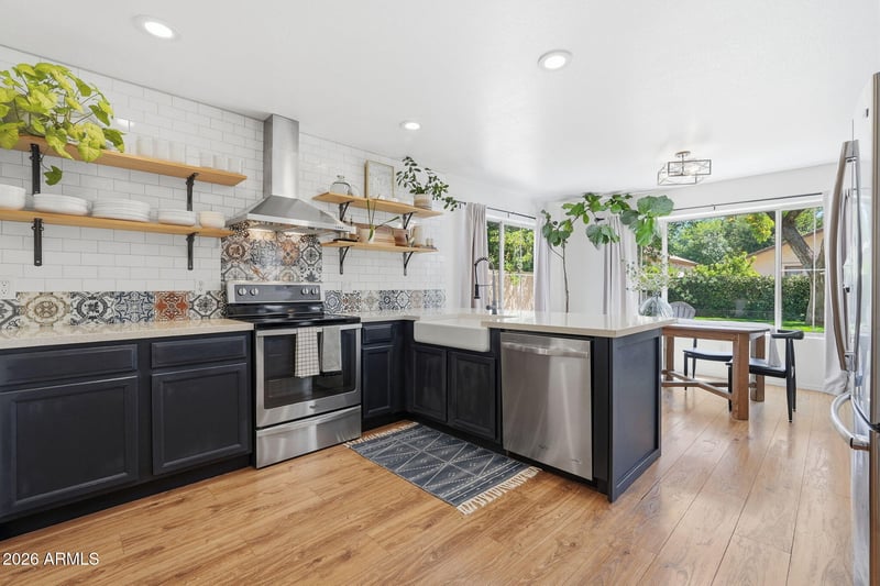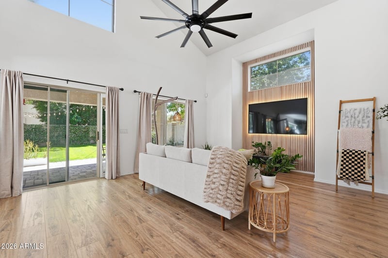Listing details for 3629 Park Ave, Gilbert, AZ 85234 : BRIGHT, SPACIOUS, & OPEN. Located in Higley Groves at Morrison Ranch, this 3 bedroom, 2.5 bath home on a CORNER lot is exactly what you have been looking for! This home shows like a model home with too many upgrades to list. Vaulted ceilings invite you into the stunning living room with high-end laminate plank flooring, custom slatted wood panel wall, and plenty of natural light. The kitchen is beautifully curated featuring a custom tile backsplash, stainless steel chef's hood, floating shelves, pantry, stainless steel appliances, a breakfast bar, and it perfectly overlooks the lush backyard. Behind the barn door just off the kitchen is a mud room with additional storage, a drop zone for all your daily needs, and even a spot for your coffee maker! The backyard is... your own personal getaway, featuring a large covered patio, mature trees, an expansive pavered area, and sides to a common area. Even the garage is finished with flaked epoxy flooring! The desirable Higley Groves at Morrison Ranch community has plenty of tree lined streets and parks! Do NOT miss out on this one, schedule your showing today!